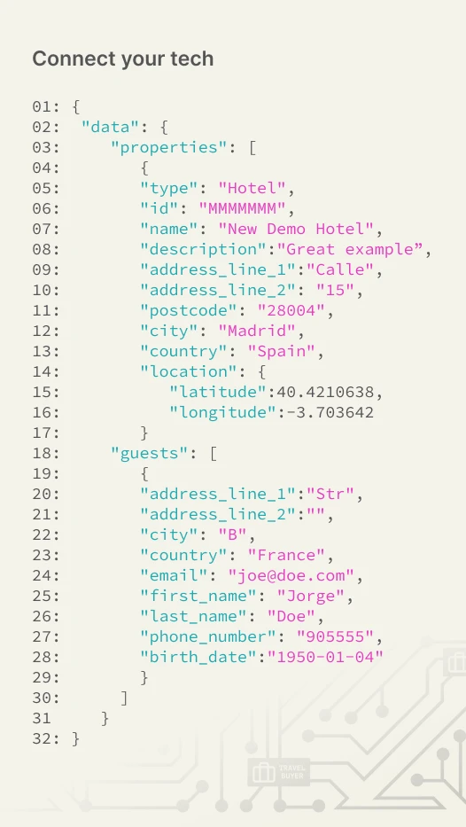 Seamlessly connect to the tech you already use by integrating with our buyer API or, for hotels, directly with your PMS or CRS.